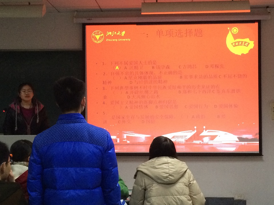 “大家知道今天是什么日子?”是的,今天就是首个南京大屠杀国家公祭日,七十七年前的这个时候南京正遭受着日寇的屠杀。在这一天我们班举行爱国知识答题竞赛,发扬爱国主义精神,不忘历史,开创未来。
