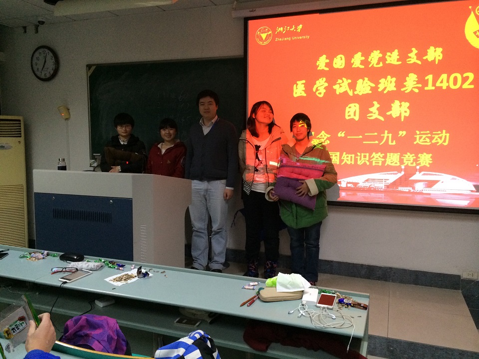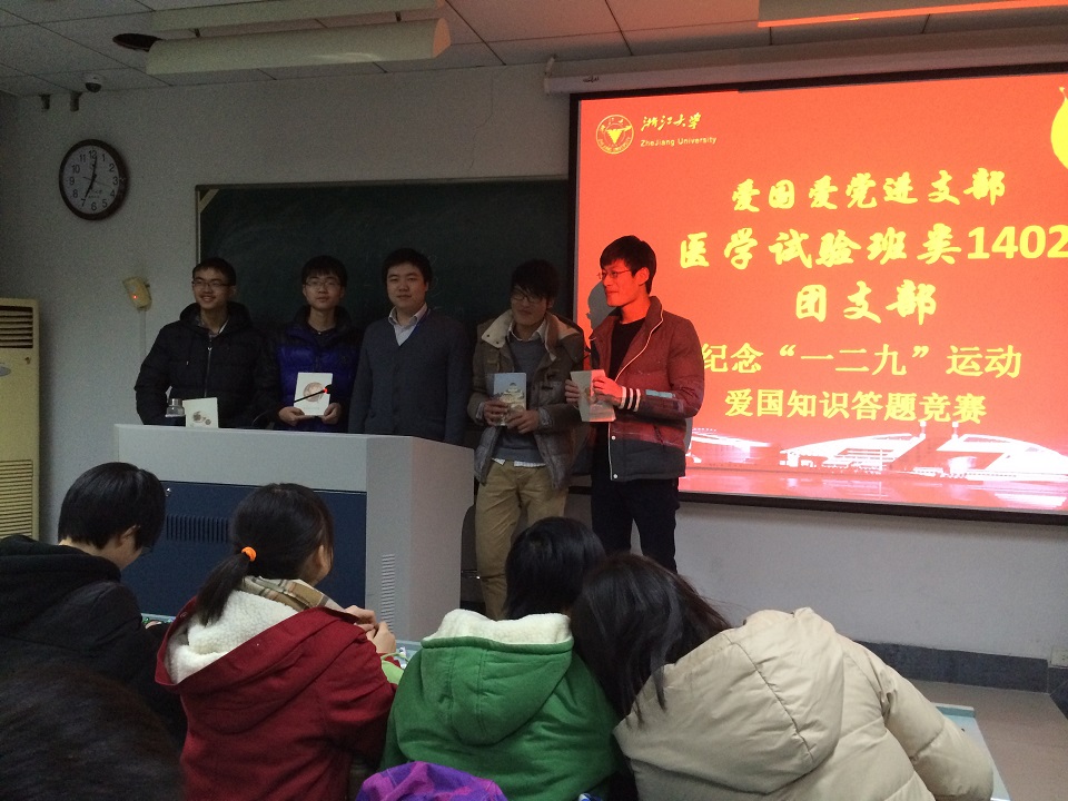 2014年12月13日晚,医学试验班类1402团支部在西一309举办了一次纪念129运动爱国知识答题竞赛的活动。