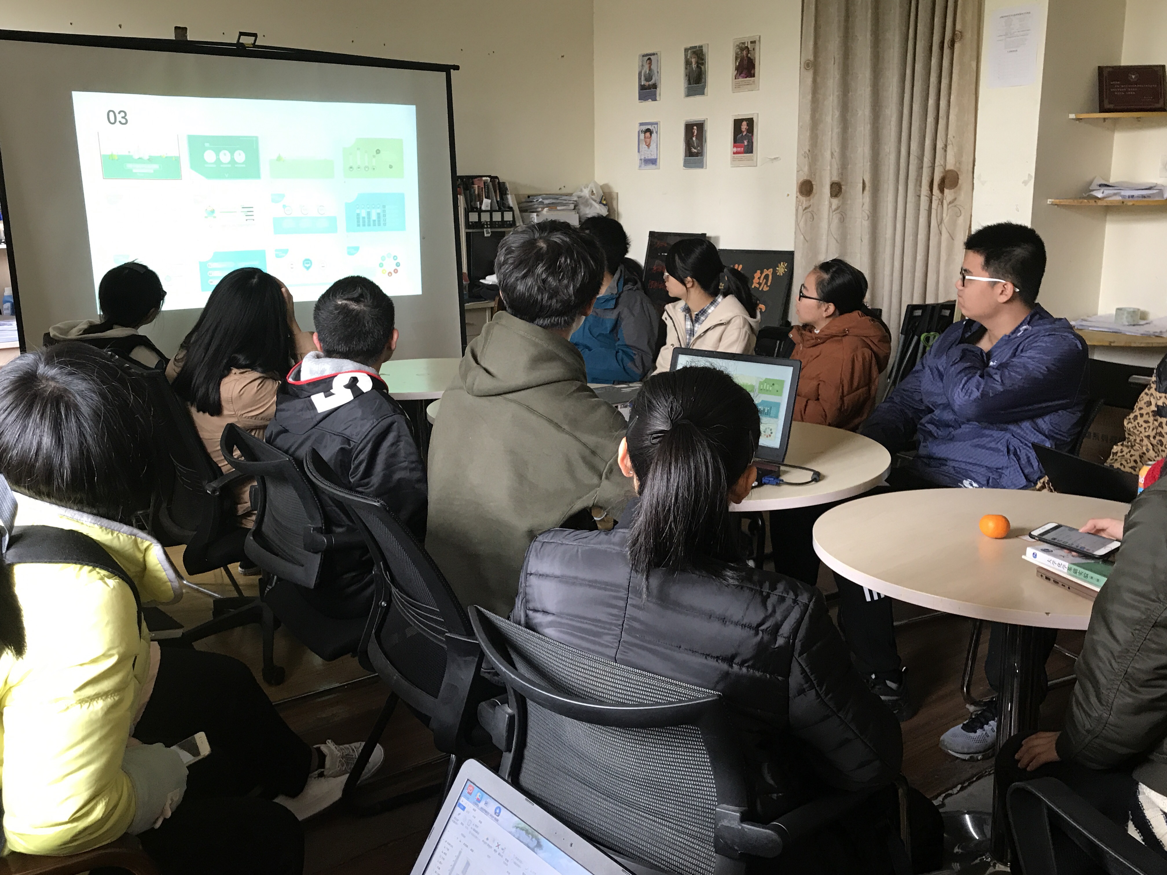 2017年11月25日下午14:00,在云峰职业生涯规划基地,学长季俊涛为参加复赛的选手们进行了一场有关PPT设计与展示的培训。