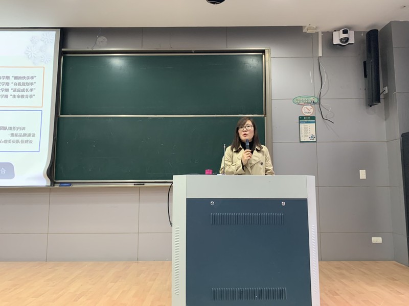 接着,她向在座的同学们明确了心理委员(兼信息员)的工作职责,主要是配合学园心理健康教育工作、宣传普及心理健康知识、参与和组织开展心理健康教育活动、为同学提供心理上的支持、关注特殊个体并及时反映异常心理问题和突发状况等。每个长学期将按照一定的标准进行一次对心理委员工作的考核评优,选出优秀的10名心理委员进行表彰。
