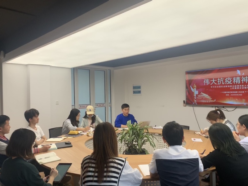 2020年9月28日,丹阳青溪学园第三党支部在丹青学园连廊202会议室召开党员大会并进行党课学习。会议分为三个阶段:一、完成支委调整工作;二、主题党课《伟大抗议精神,学习习近平总书记在全国抗击新冠肺炎疫情表彰大会上的重要讲话精神》学习;三、疫情期间的感悟分享。