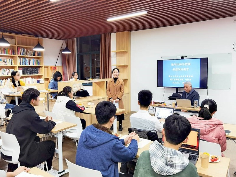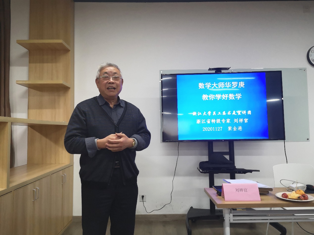 2020年11月27日晚,求是学院蓝田学园第二期导师沙龙暨“在鲜红的党旗下”党建教育平台系列活动在蓝一辅楼202悦空间顺利举行。邹先定工作室成员、原浙江大学理学院数学系教授、浙江大学关工委求是宣讲团成员、浙江省特级专家刘祥官老师应邀出席,并向同学们传授学习数学的经验和意义。活动还邀请了蓝田学园分团委副书记、辅导员杨洋老师出席参加,活动由蓝田学业发展中心指导老师黄海伦老师主持。
