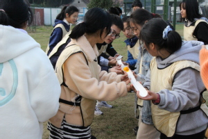 在“挑战五分钟”里,同学们在五分钟内需要完成三个任务,“不倒森林”、“管道传乒乓球”和“击鼓”。这些活动都要求团队成员积极配合,要求队长合理分工,指挥得当。活动过程中,有4支团队在规定的时间内完成了活动,另外两支队伍因为“击鼓”环节失误没有完成。无论成功或是失利,同学们都增强了团队意识,相互的配合也越来越默契。
