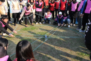 上午的活动愉快而短暂,随之而来的是午饭休息的环节。每队围成一桌,在碗筷碰撞的叮叮咚咚声中缓解了上午的疲劳,大家也在愉快的交谈中对彼此有了更深的了解。午饭毕,大家三三两两的享受着冬日的阳光,玩着小游戏,期待下午活动的来临。