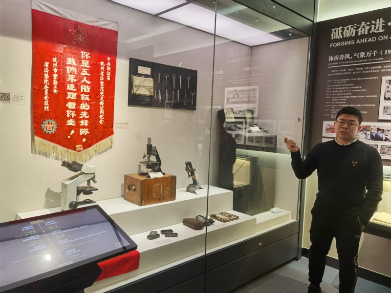 在朱医生的引领下,同学们依次参观了浙医二院院史馆的三个展厅,全面了解了浙医二院的院史。馆内一张张记录时代的照片,一份份佐证事件的文档,一件件见证历史的物品,真实再现了浙医二院151年的峥嵘岁月。同学们认真观看了展览的资料,并不时向朱医生请教一些问题,现场氛围热烈活泼。当朱医生向同学们介绍浙医二院一些先进的医疗技术,如机器人介入治疗时,现场氛围达到了最高潮,同学们纷纷对这些先进技术表达了惊叹之情,并表示对医学的进步有了全新的认识。