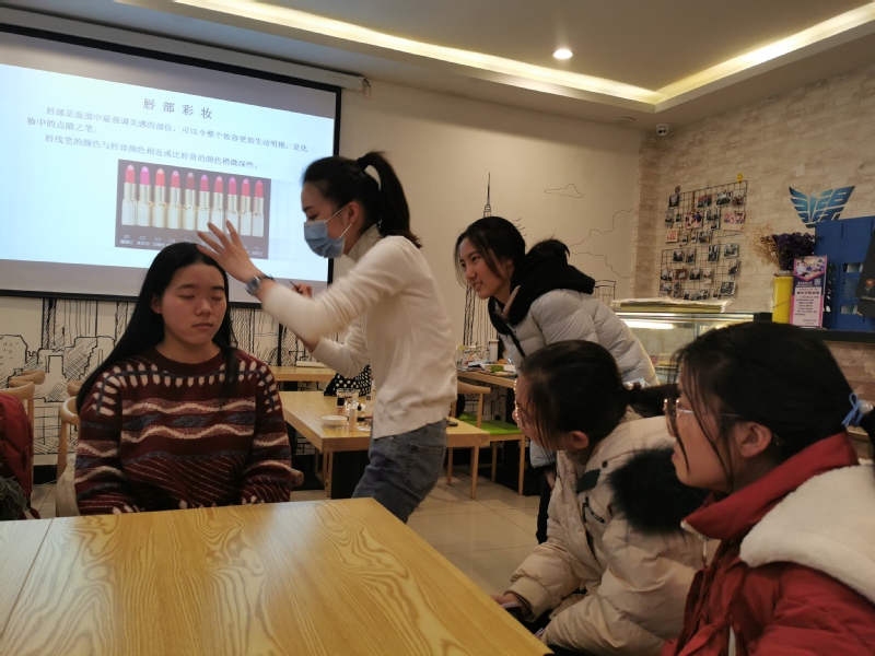 紧接着,梁老师结合精心制作的PPT,生动形象地向大家演示了化妆的全过程。梁老师根据同学们的经济情况,推荐了一些适合学生的化妆品牌,帮助学生在经济条件承受得起的状况下,购置最适合自己的美妆产品。