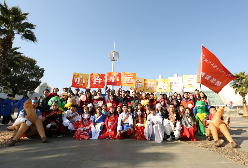 2020年12月31日下午12时许,浙江大学第七届学生节主题巡游活动正式开始,各院系的巡游方阵在文化广场整装完毕。缤纷的服饰,富有朝气的学子,体现了各院系的专业特色,展示了各个院系的飞扬风采。校党委书记任少波,校长吴朝晖,副校长严建华,副校长张宏建,党委副书记叶民,副校长何莲珍,副校长王立忠,党委副书记邬小撑,党委副书记傅强,副校长黄先海出席启动仪式。任少波、吴朝晖为风采展中的方阵和队伍授旗,在场校领导一起拉动主席台两侧的帆绳,共同启动了浙江大学第七届学生节青春风采展。邬小撑主持启动仪式。丹青学园副主任徐晓峰、张力三,团委书记郑玲玲及丹青学园各位辅导员老师参加本次启动仪式并加入学园巡游方阵。