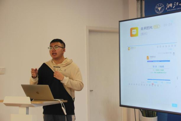 会议的第一项,项目组成员、第一期优秀志愿者柯亦婷同学从项目背景、项目理念、项目建构、项目运行机制、项目周期、未来发展路径等多个方面给大家简要介绍了该项目,志愿者们对“走来”支教项目也有了更具体的了解。