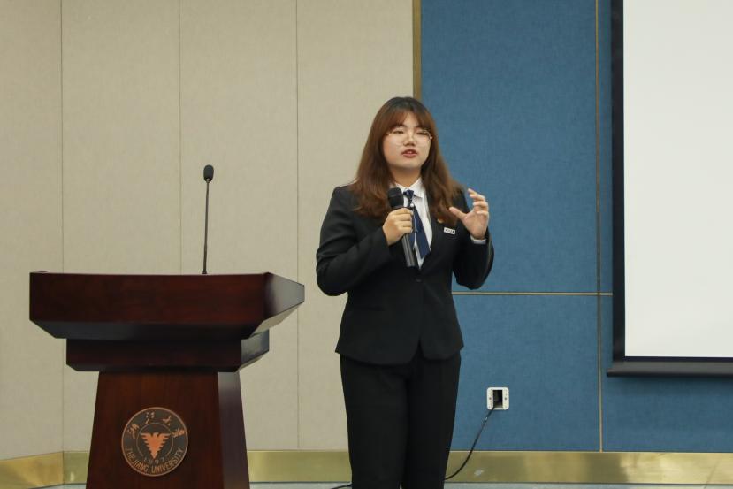 浙江大学校学生会主席团成员李津龙到会致辞。李津龙首先代表浙江大学学生会对本次蓝田学园学生代表大会的召开表示热烈的祝贺。他表示,过去一年蓝田学园学生会秉承“学求真理、行求正义、理术兼长、明体达用”的园训精神,始终坚持“一切为了同学,为了同学的一切”的宗旨,团结和带领广大蓝田学子,打造特色亮点、创新服务理念,密切联系同学,竭诚服务同学,举办了一系列有深度、有广度、有温度的的学术、双创、文化、公益活动,切实为丰富同学们的校园生活贡献了智慧和力量。在之后的工作中,他希望蓝田学园学生会加强内部建设,提高服务水平,准确把握学生服务定位,聚焦主责主业,扩展多方联动,丰富交流活动。