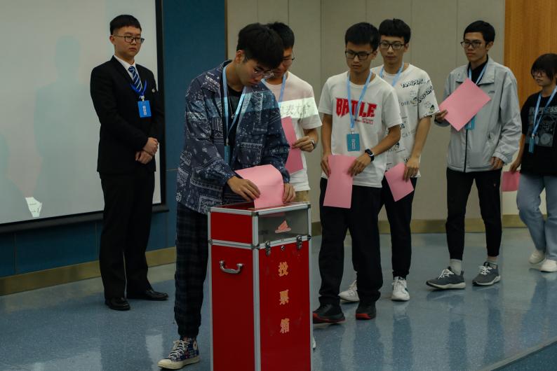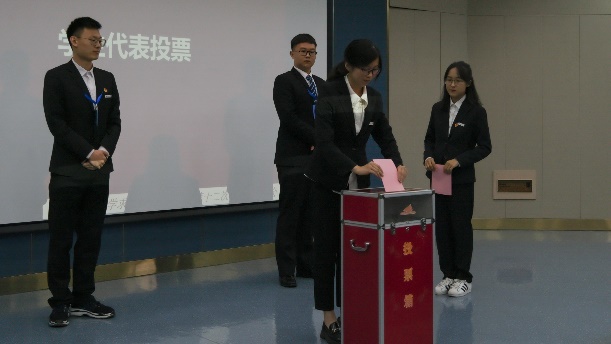 蓝田学园出席浙江大学第三十四次学生代表大会代表候选人一一上台展示,学代会全体与会代表以无记名投票的方式对蓝田学园出席浙江大学第三十四届学生代表大会代表候选人进行选举。