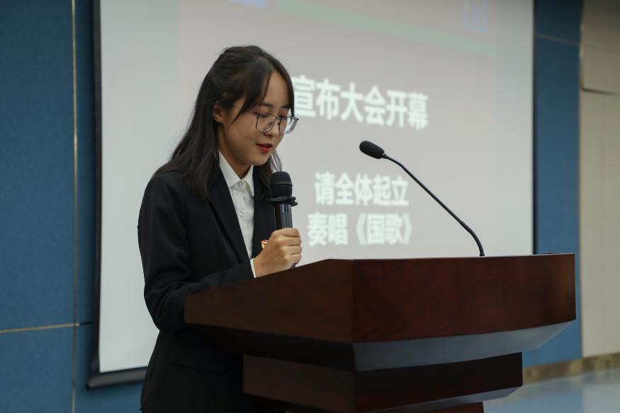 短暂休会后,正式会议第一阶段在嘹亮的国歌声中正式拉开帷幕。第一阶段在蓝田学园第十一届学生会主席团成员章慧的主持下顺利进行。