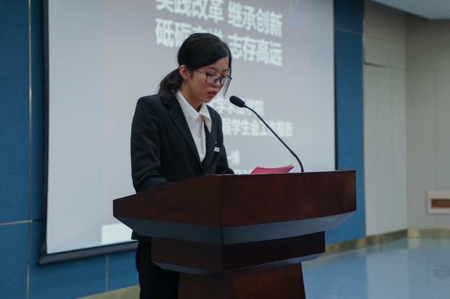 与会全体代表认真听取审议了蓝田学园学生会第十一届主席团成员孔一博所作题为《改革创新 勤勉务实 志存高远 砥砺奋进》的工作报告。