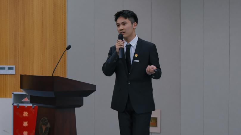 求是学院蓝田学园第十二届学生会主席团候选人分别作公开演讲。全体代表以无记名投票的方式进行选举。
