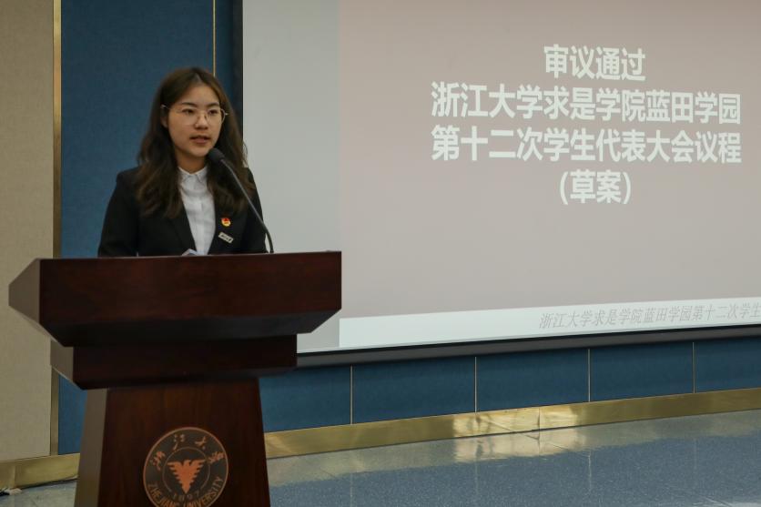 本次大会听取和审议了《浙江大学求是学院蓝田学园第十一届学生会工作报告》、《浙江大学求是学院蓝田学园学生会章程(修正案)》、《浙江大学求是学院蓝田学园第十二次学生代表大会提案工作报告》,选举产生了浙江大学求是学院蓝田学园第十二届学生会主席团成员,选举产生了浙江大学第三十四次学生代表大会求是学院蓝田学园代表团代表。