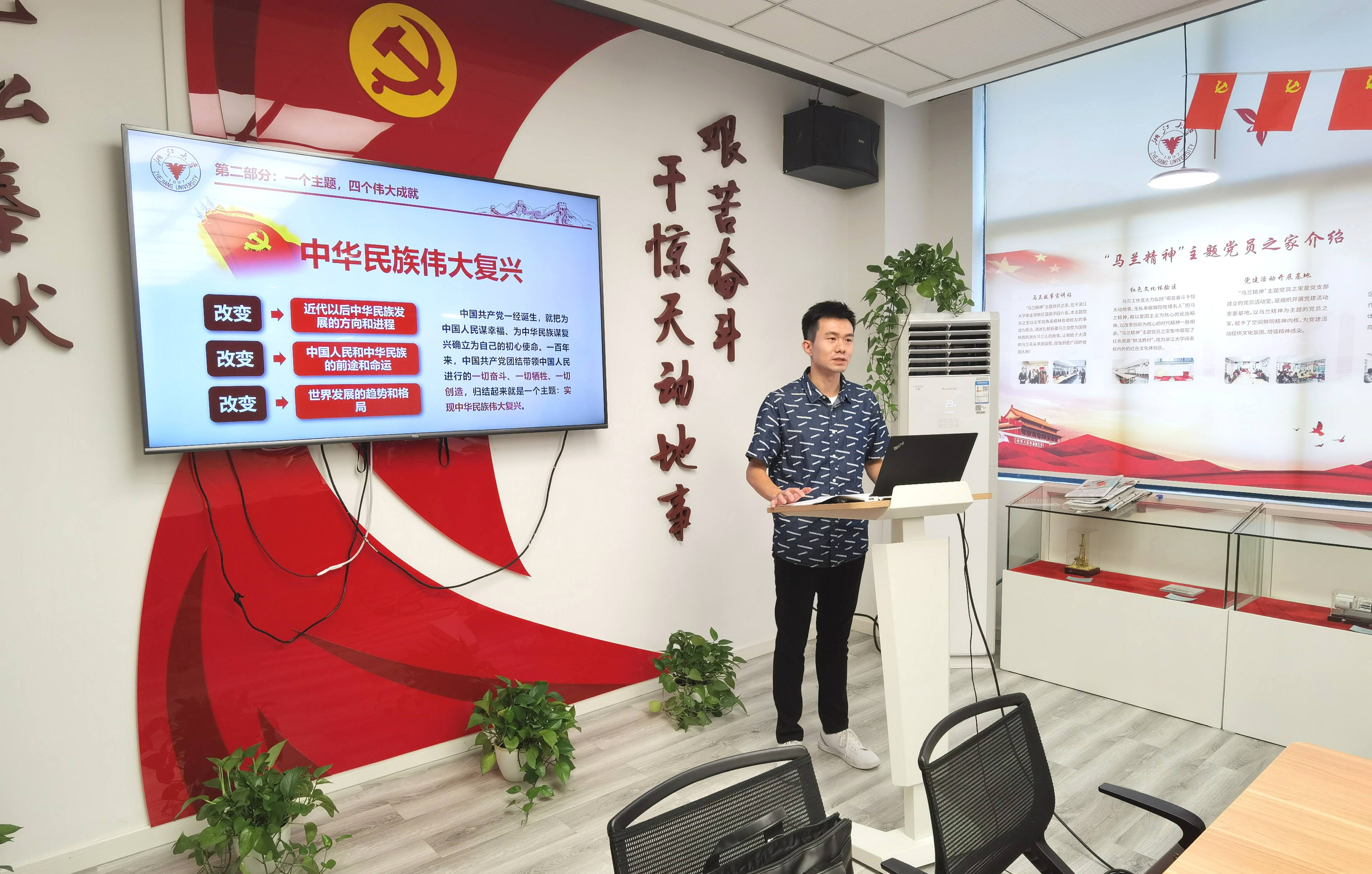 会上,董业凯首先开展了主题党课,带领大家一起学习习近平总书记在庆祝中国共产党成立100周年大会上的重要讲话精神。他以“一个主题”“四个伟大成就”“九个必须”为切入点,带领大家原原本本学习讲话内容,同时结合学校新发展阶段使命愿景大讨论有关内容,鼓励全体党员同志胸怀“国之大者”,坚定理想信念,在国家向社会主义现代化强国迈进的重要阶段和学校攻坚新一轮“双一流”建设的历史进程中贡献不悔青春和力量。