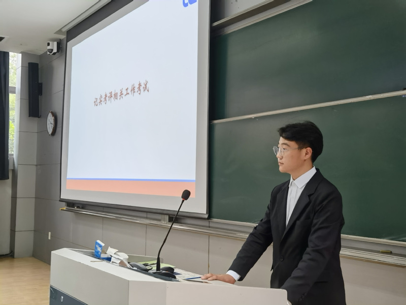 在培训会上,白宇哲学长首先向大家介绍了综合素质评价体系,其次对思想政治素质评价展开了讲述,强调了活动记实的重要性,最后详细地讲解了活动记实申报与审核的流程。学长着重强调在工作中需要注意的各种事项,如提供照片要求、命名问题和格式规范。本次培训逻辑清晰、层次鲜明,PPT与实际活动开展经验相结合,培训内容生动形象、深入人心。