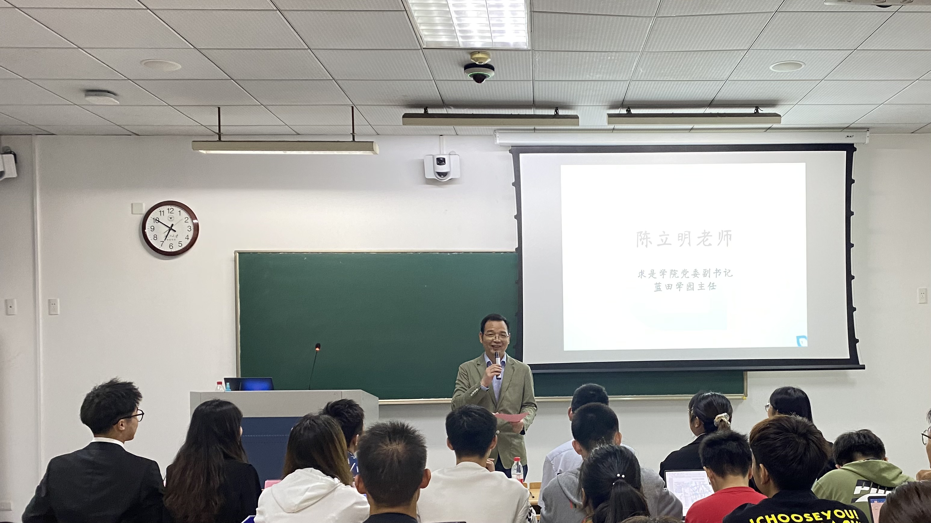颁发聘书环节结束后,陈立明老师发表了满是干货的演讲。他首先表示了对这一届蓝田学生会寄予的厚望,接着有机结合生物学的理论分享了对组织精神的独特看法:成员应该自觉自愿地加入组织;组织要有所侧重有所分工并做好成员的思想统一;要提高单兵作战能力、使个体的能力得到充分发挥,使个人的愿景与组织的愿景得到统一。最后,他希望学生会组织这个平台中的每一个成员都得到锻炼与培养,在组织内学会协同与配合。