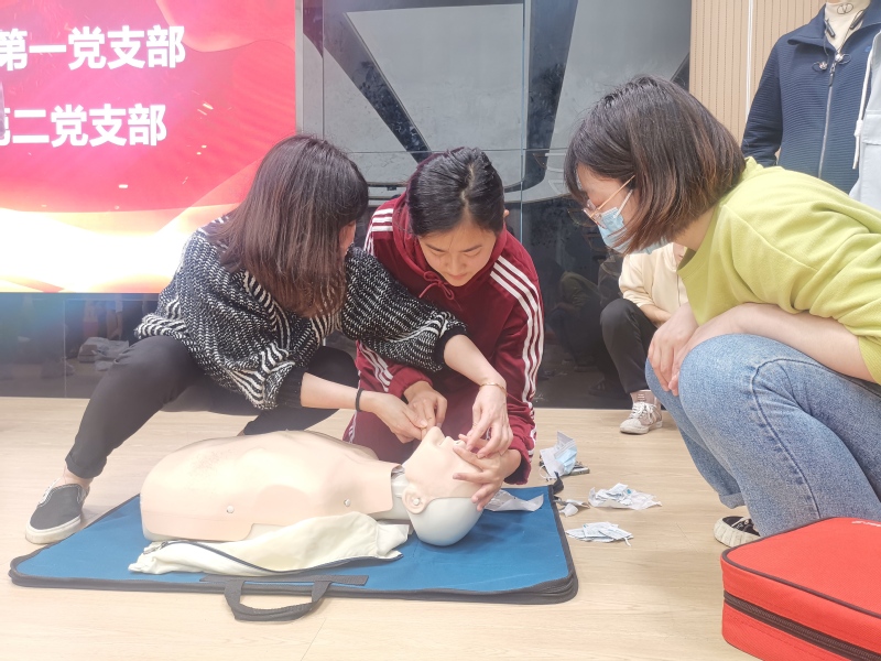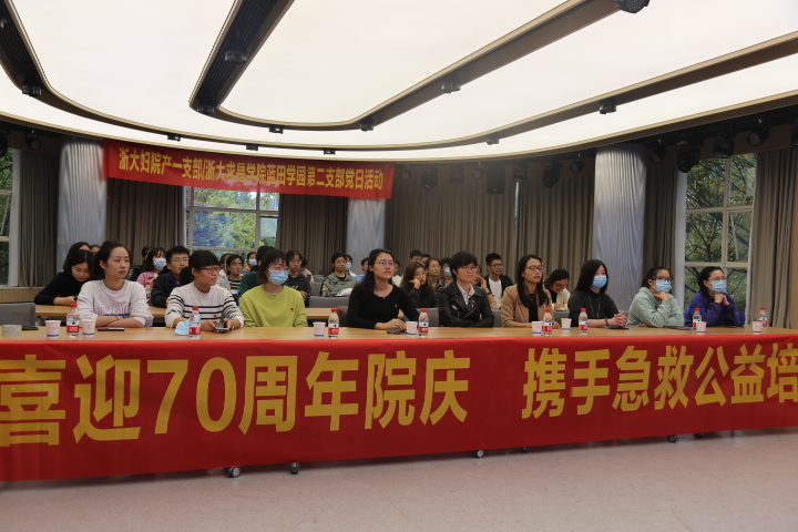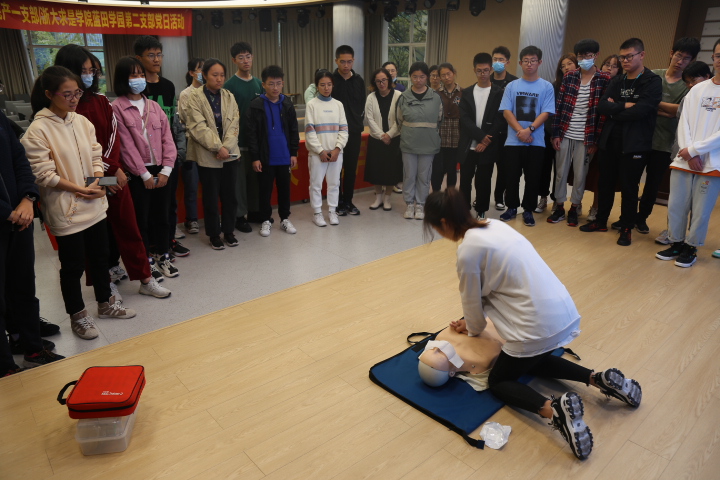 11月5日下午,在产一支部书记、蓝田学园专聘副主任、产一科主任梁朝霞、产一科护士长李君琴等带领下,产一支部共9名党员代表来到紫金港校区白沙报告厅,给求是学院蓝田学园60多名学生开展了心肺复苏术(CPR)及自动体外除颤器(AED)急救知识与实践技能培训。蓝田学园第二党支部车淼洁、西仁古、孙丰柯、胡非等教师党员代表参加。