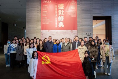 20211112日下午,丹青学园第一党支部与外语学院本科生第一党支部、求是学院教工党支部联合举办了主题为“认识中华文明,弘扬中华文化,增强文化自信”的主题党日活动,支部党员前往浙江大学艺术与考古博物馆参观“中国历代绘画大系”阶段性成果展,感受源远流长的中华文化。