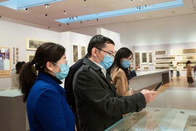 参观过程中,大家频频驻足停留,仔细地观看精美绝伦的绘画作品,博物馆还给每一幅展出的画作都制作了“说明书”,只要用手机扫一扫就可以深入了解作品的具体信息,让每一位参观者都可以全面细致了解到展品及其背后的文化内涵。