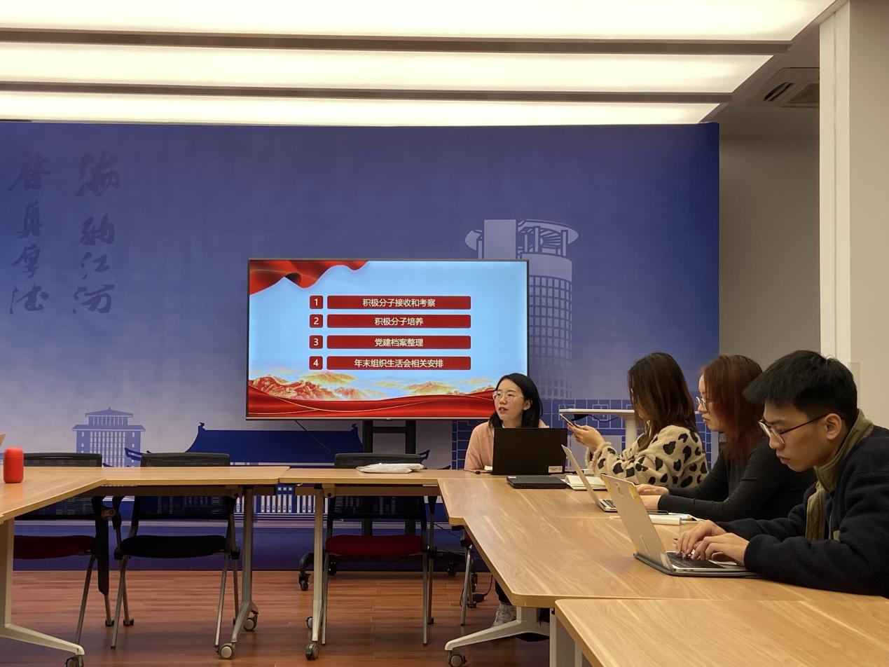 最后,党支部书记对支部近期的工作进行了相关部署,主要涉及积极分子的接收和考察、积极分子的培养、党建档案的整理、年末组织生活会的相关安排四个方面。支部各成员对相关工作进行了记录。
