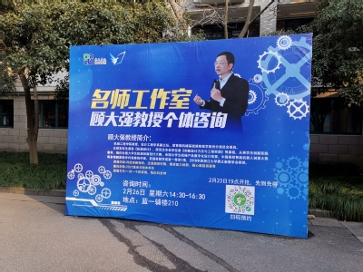 2月26日下午,机械工程学院教授、设计工程学系副主任、教育部机械基础课程教学指导分委员会委员顾大强教授来到蓝田学园,在“名师工作室”——蓝一辅楼210为同学们进行个体咨询。四位同学提前抢到了咨询名额。