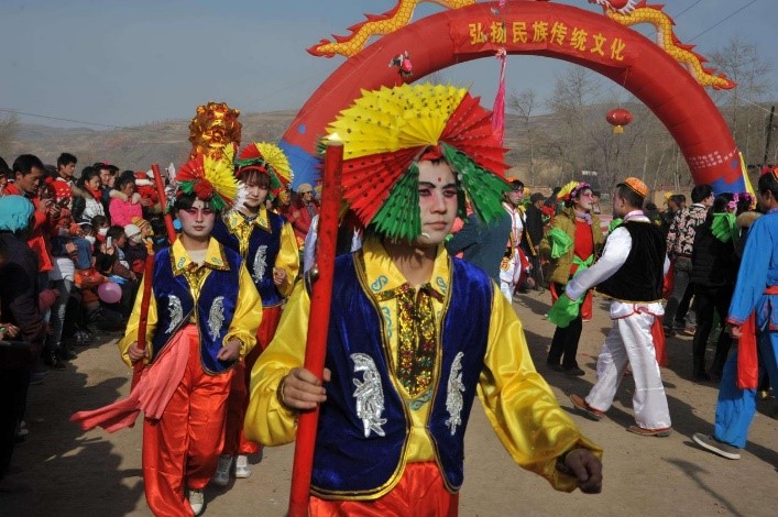 支部党员何帅民同志则参与到了家乡三门峡的传统民俗活动中。他介绍到:“在我的家乡三门峡,每个村子几乎都有自己的社火队。社火队的组成上至耄耋老人,下至黄口小儿,每到正月十五,不同村子的社火队走村串乡,互相‘斗社火’。”他作为年轻的95后,欣赏并认同中华文化的独特魅力,主动学习并弘扬民族传统文化。