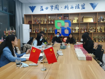 2022年4月13日晚19:00,蓝田学园第二党支部四月党员大会于蓝六206召开,会议采取线上线下相结合的形式,全体党员20人参加会议,会议由党支部书记车淼洁主持。