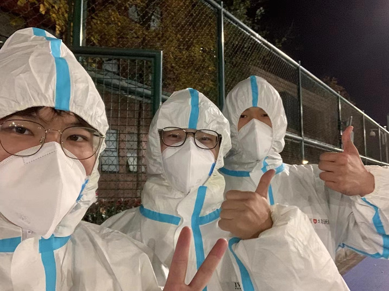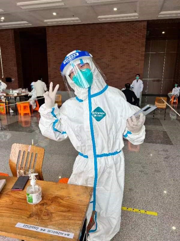 吕斯思同志在4月14日下午作为学校机关志愿者参与了全校集中核酸检测工作。她说:“下午3个小时的“大白”志愿者工作,让我深深感受到了抗疫工作的不易,也对一直奋战和奉献在抗击疫情第一线基层工作的医务工作者们有了更深的敬佩,感动满满。”