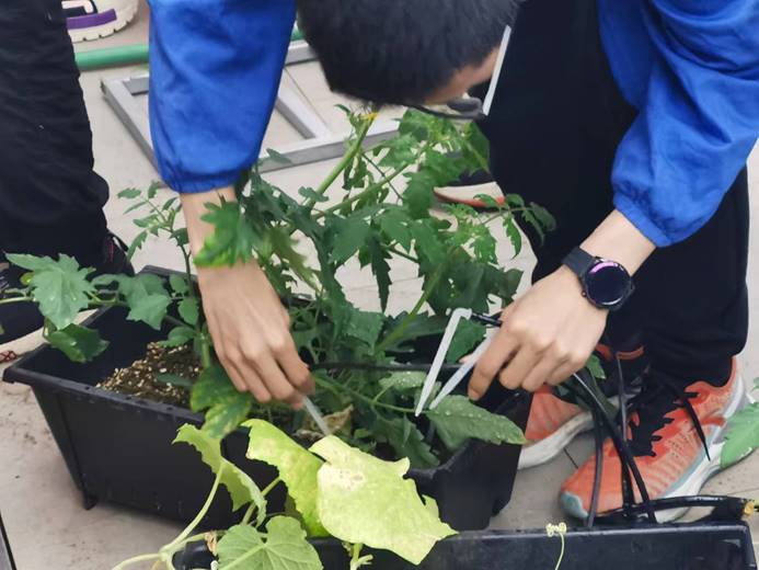 一株一把肥,一季一丰收。肥料是植物生长的助推剂,在亲自体验了几次各类肥料的施加过程后,同学们学习自己动手来科学配比出“生长助推剂”,掌握固体肥料的配置方法,为温室所种植的植株提供充足的营养,进一步丰富自身的农业生产经验。