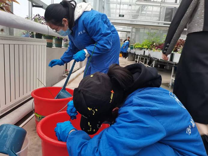 本次课程的最后一项内容是给植物浇水。同学们第一次尝试用温室内的专业装置为植物添加生长所必需的水分。随着一株株植物身披甘霖,同学们的动作愈发熟练,心情也渐渐轻快起来。