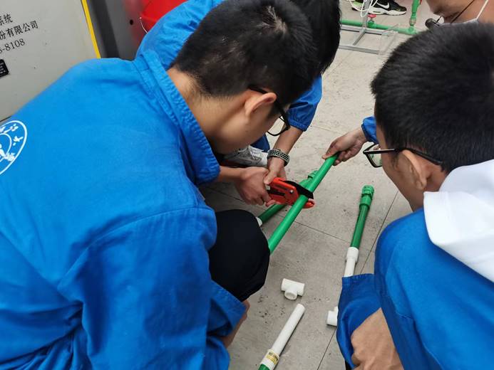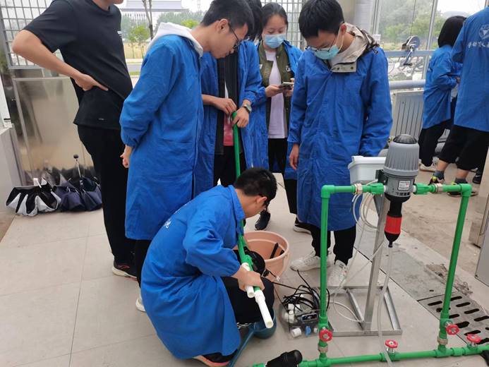 “纸上得来终觉浅,绝知此事要躬行。”在认识滴灌系统后,同学们再次来到温室,进行安装滴灌装置的实战工作。面对陌生的管道、部件饿工具,同学们稍显青涩迷茫,但在老师的指导、团队的通力合作下,最终圆满完成了安装滴灌装置的任务。