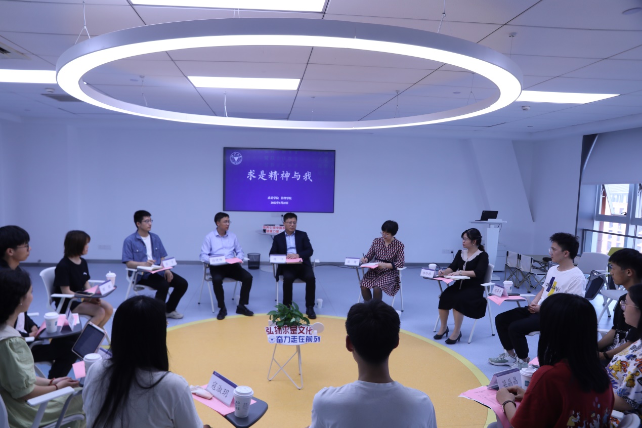 2022年5月25日下午,“求是精神与我”圆桌沙龙之管院师生专场在管理学院B座10楼孵化器举行。管理学院院长魏江、管理学院党委副书记潘健与9位2021级专业确认至会计学、工商管理和信息管理与信息系统的本科生展开了火热讨论。沙龙活动由求是学院党委副书记、丹青学园主任徐晓峰老师主持。