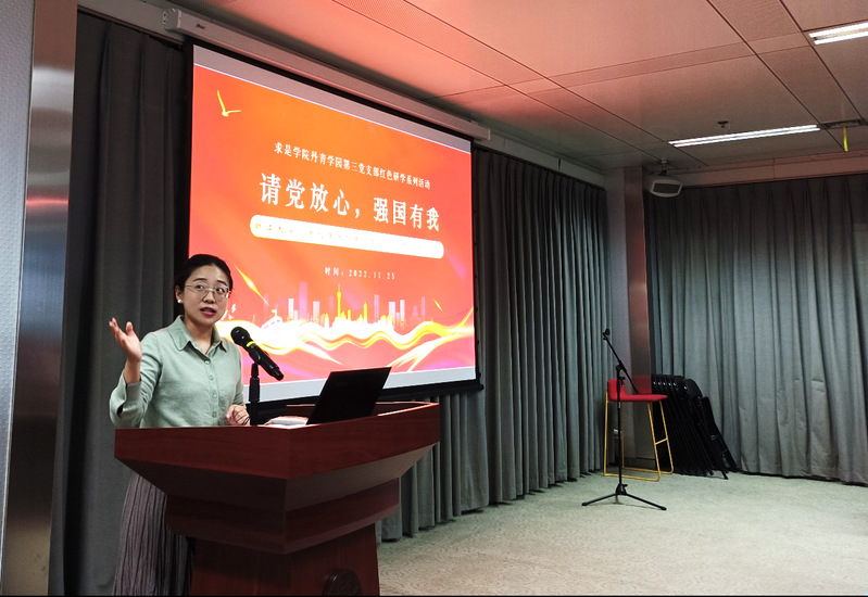 丹青学园第三党支部兼职组织员、图书馆推广与合作部副主任陈珲夏老师介绍了基地的基本情况。2005年9月,浙江省委在浙大召开省委常委会议,基地以省委常委会会址为核心,保留完整会议设施原貌,紧紧围绕着习近平同志关心浙江大学发展这一主线,其分为“牢记嘱托”区、红色文献汇聚区、“科教报国”区这三个区块,集中展示相关场景和馆藏文献。