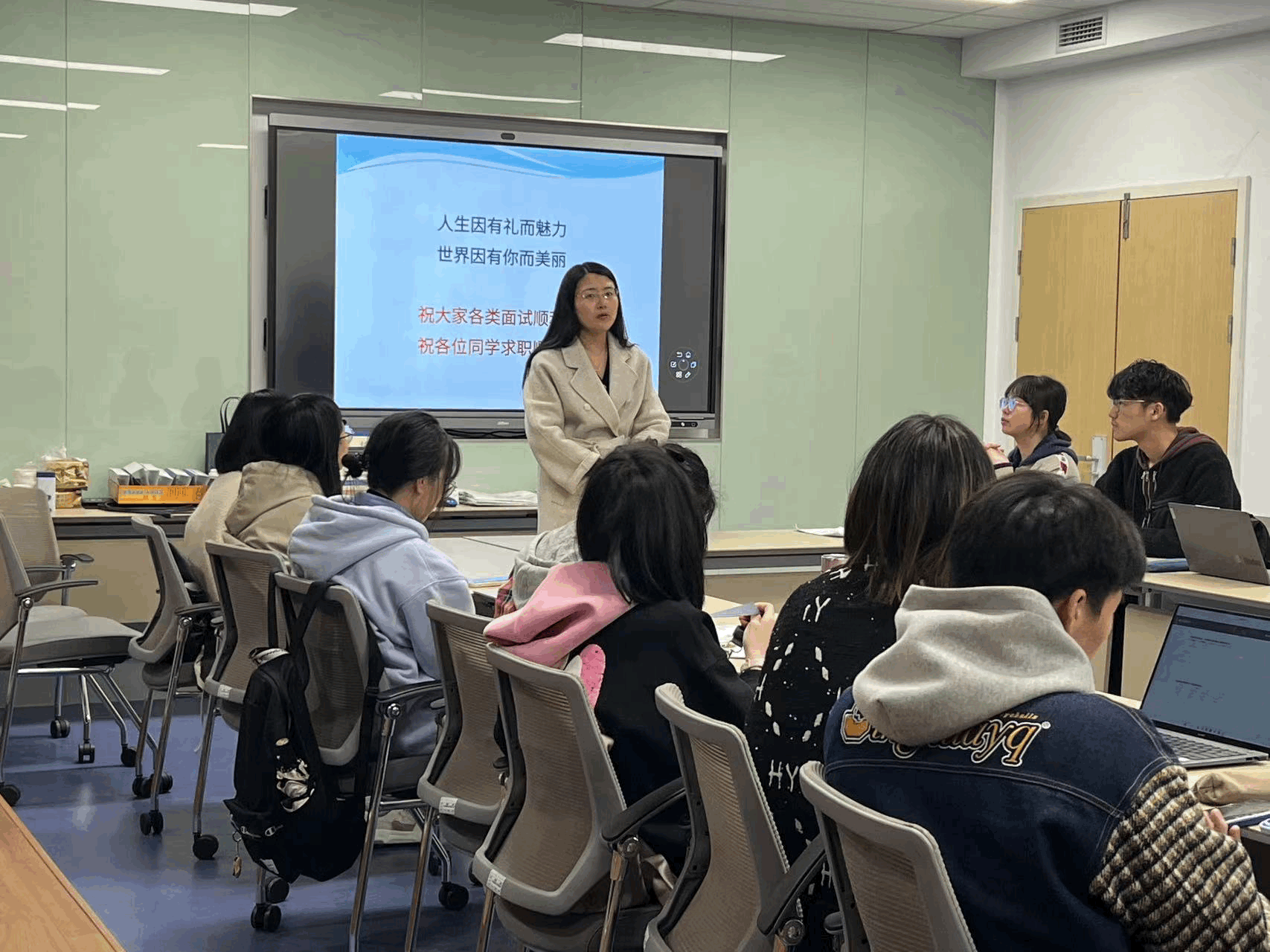 3月16日晚,车淼洁老师基于同学们对于求职面试过程中的礼仪困惑开展了求职面试礼仪专题的交流。求职面试中的小细节往往让面试者得到更多的青睐,“人生因有礼而魅力,世界因有你而美丽”。