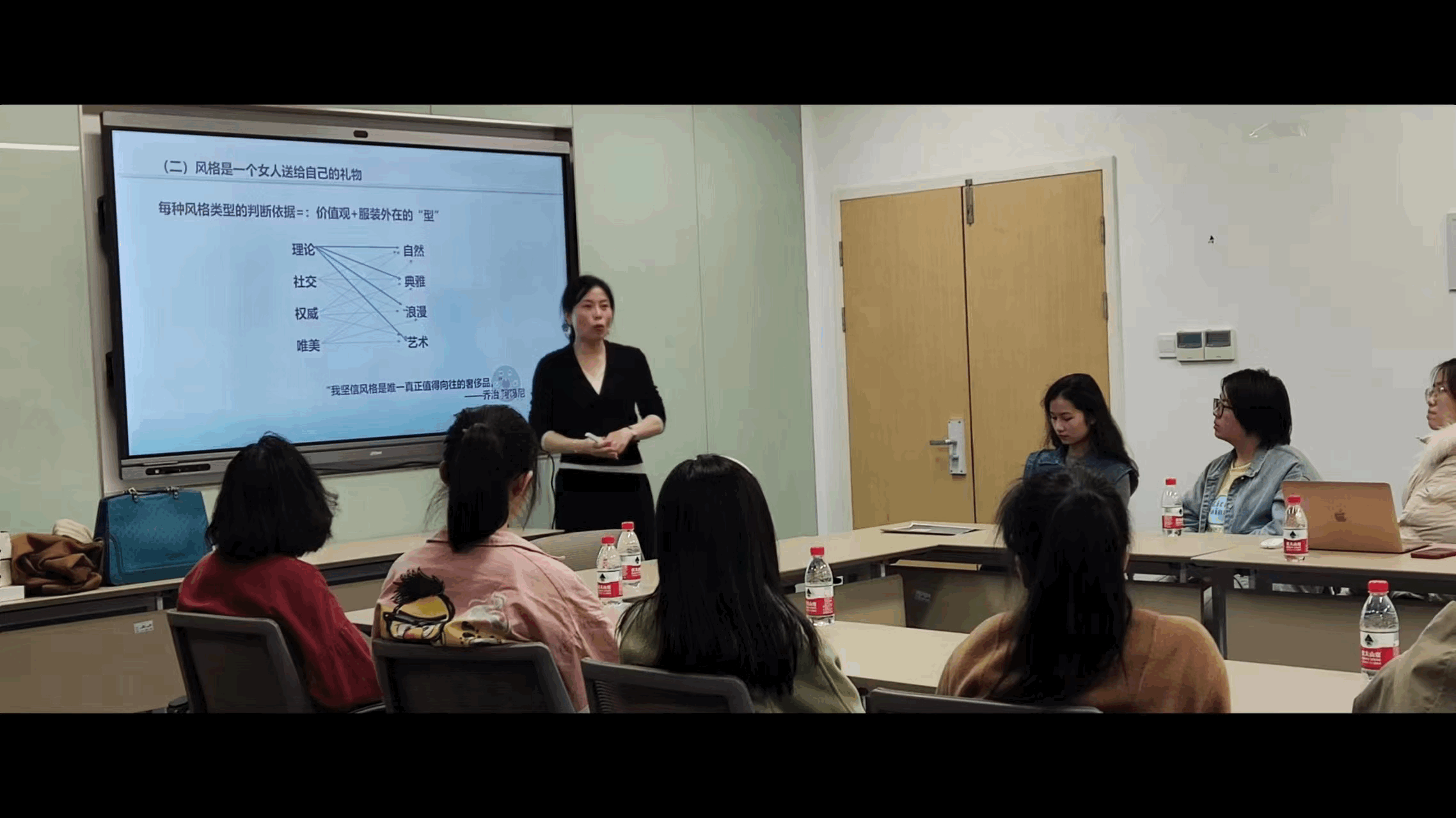 本期由包松老师、卓亨逵老师和车淼洁老师为同学们带来课程。3月7日晚,包松老师以“典雅气质塑造”为主题,为同学们介绍了服装语言与内在价值观之间的关系,引导同学们利用外在服装和内在价值观构建自己的风格。