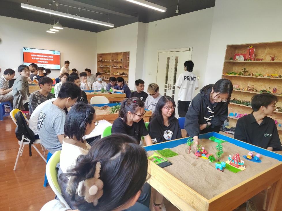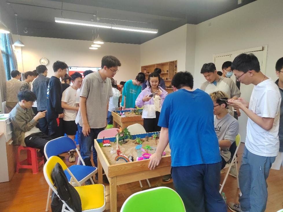 随后进行了组间交流,同学们自由观摩了其他小组的作品,桌长们则向流动至本桌的“游客”们分享介绍本组作品的理念与内涵。最后,同学们回到自己的桌前,讲述自己的所见所得,并分享自己得到的启示与收获。一沙一世界,在本次活动中,同学们感受到了沙盘背后的无形世界, 体会到了沙盘世界所蕴含的无限力量。在无声的合作与放声的交流中,每一位同学的心中都建立起了可供自己心灵栖息的“一站式”社区,都能够带着喜悦的心情和充沛的精神力量,满载而归。