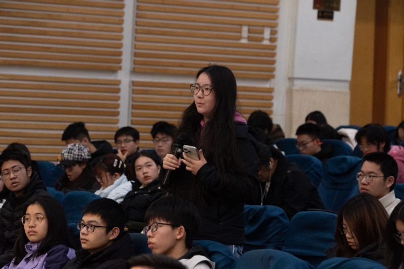 互动提问环节,学子踊跃请教。针对文科如何践行科学家精神、入党与出国发展是否冲突等问题,彭教授简要回应:科学家精神的严谨求实适用于各学科,党员身份与职业发展并不矛盾,关键是找准个人价值与国家需求的结合点,坚守初心使命。